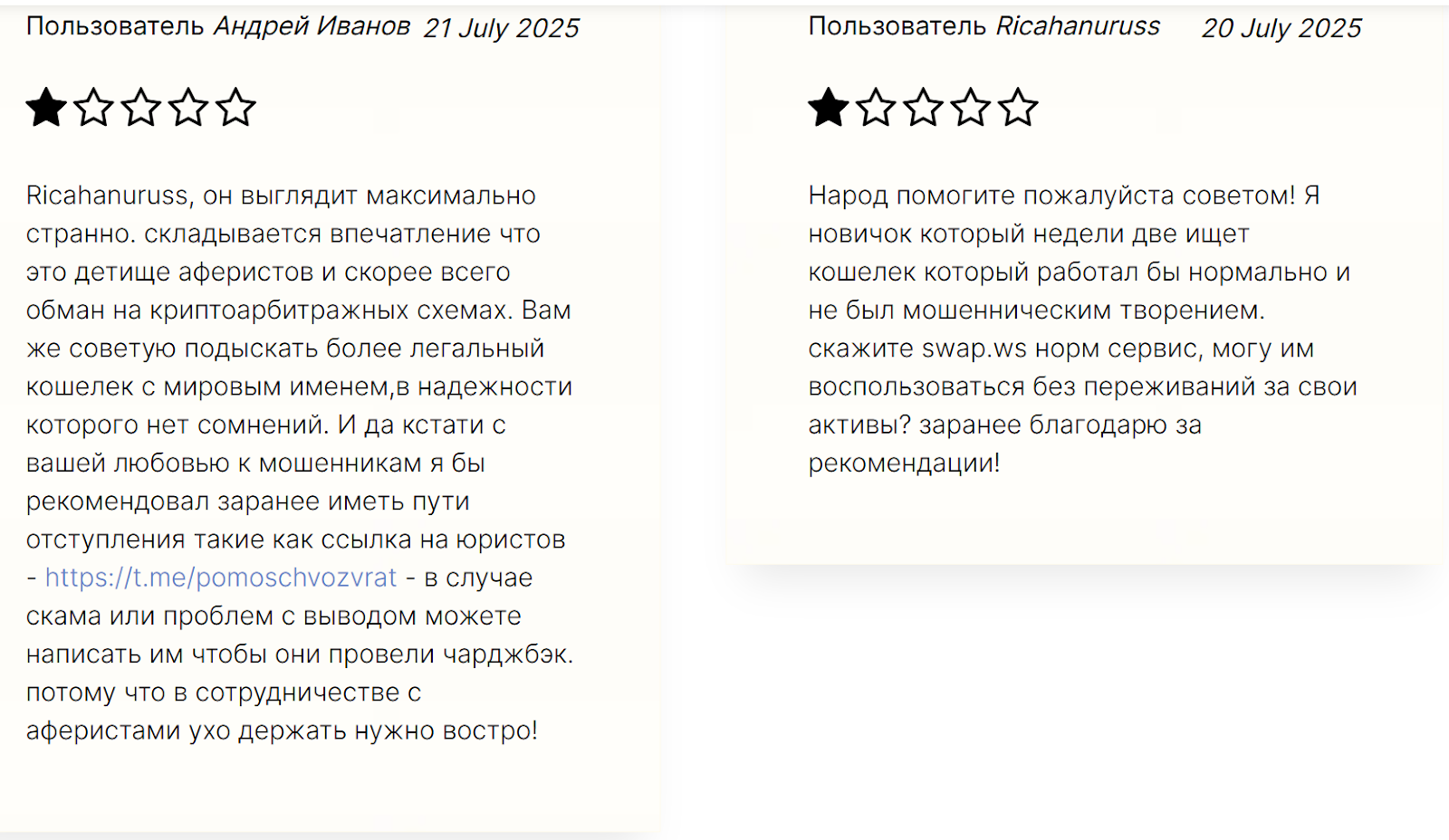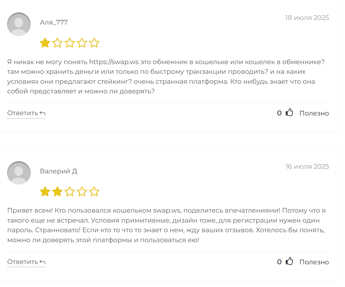 Эти комментарии усиливают подозрения в ненадежности Swap Ws. Платформа выглядит сомнительной, и пользователи советуют избегать ее до появления прозрачных данных.