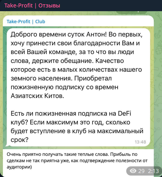 Take Profit Club: честный обзор телеграм-канала и реальные отзывы о нем в сети