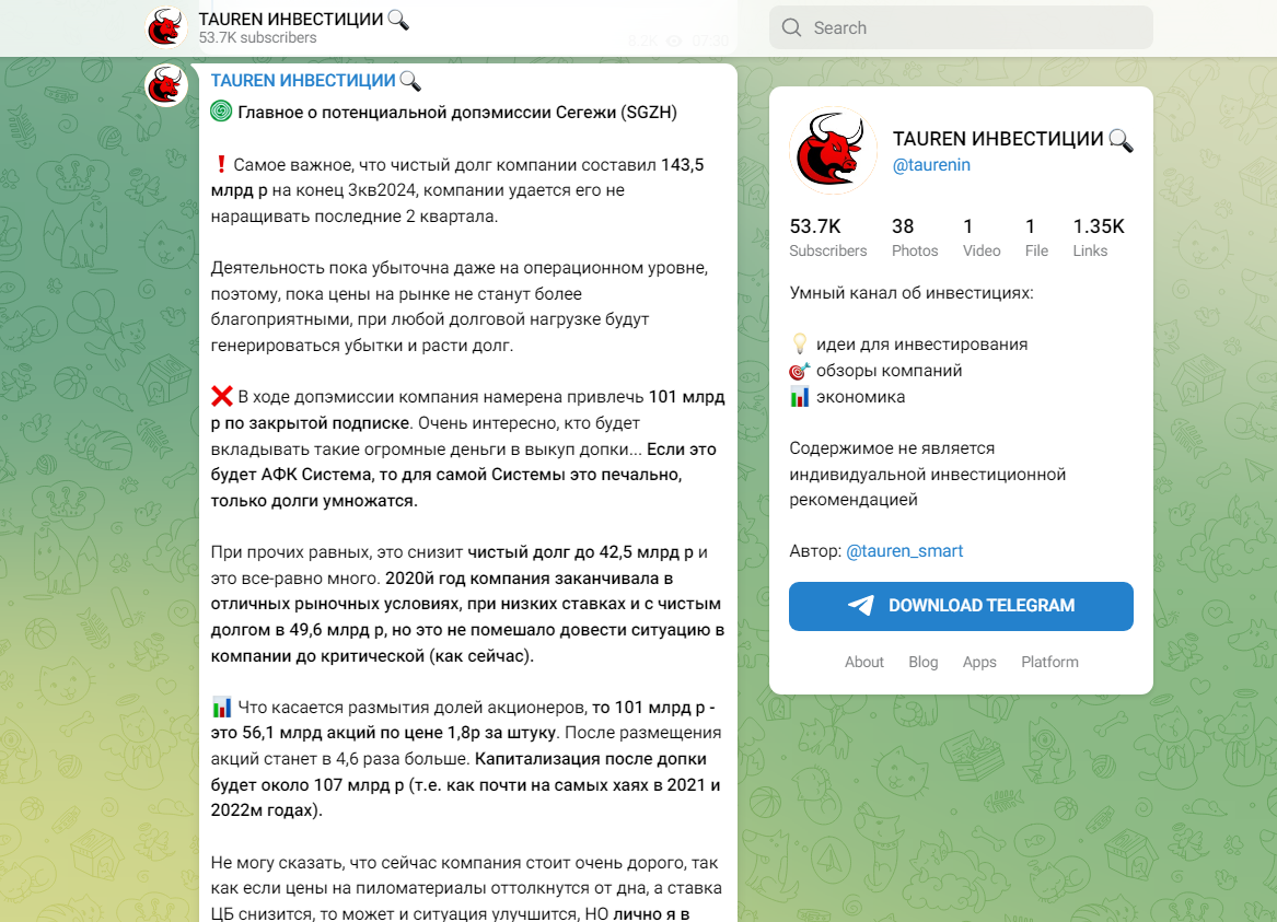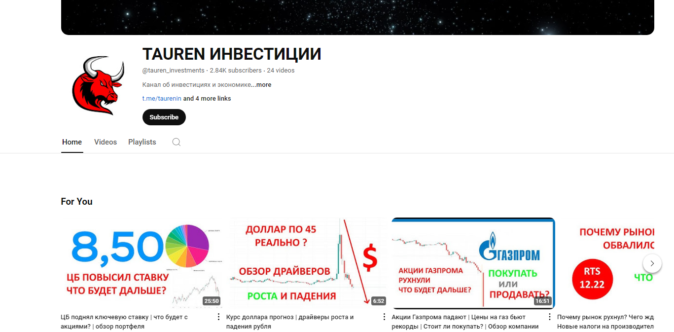Анализ Телеграмм и Ютуб канала Tauren Инвестиции