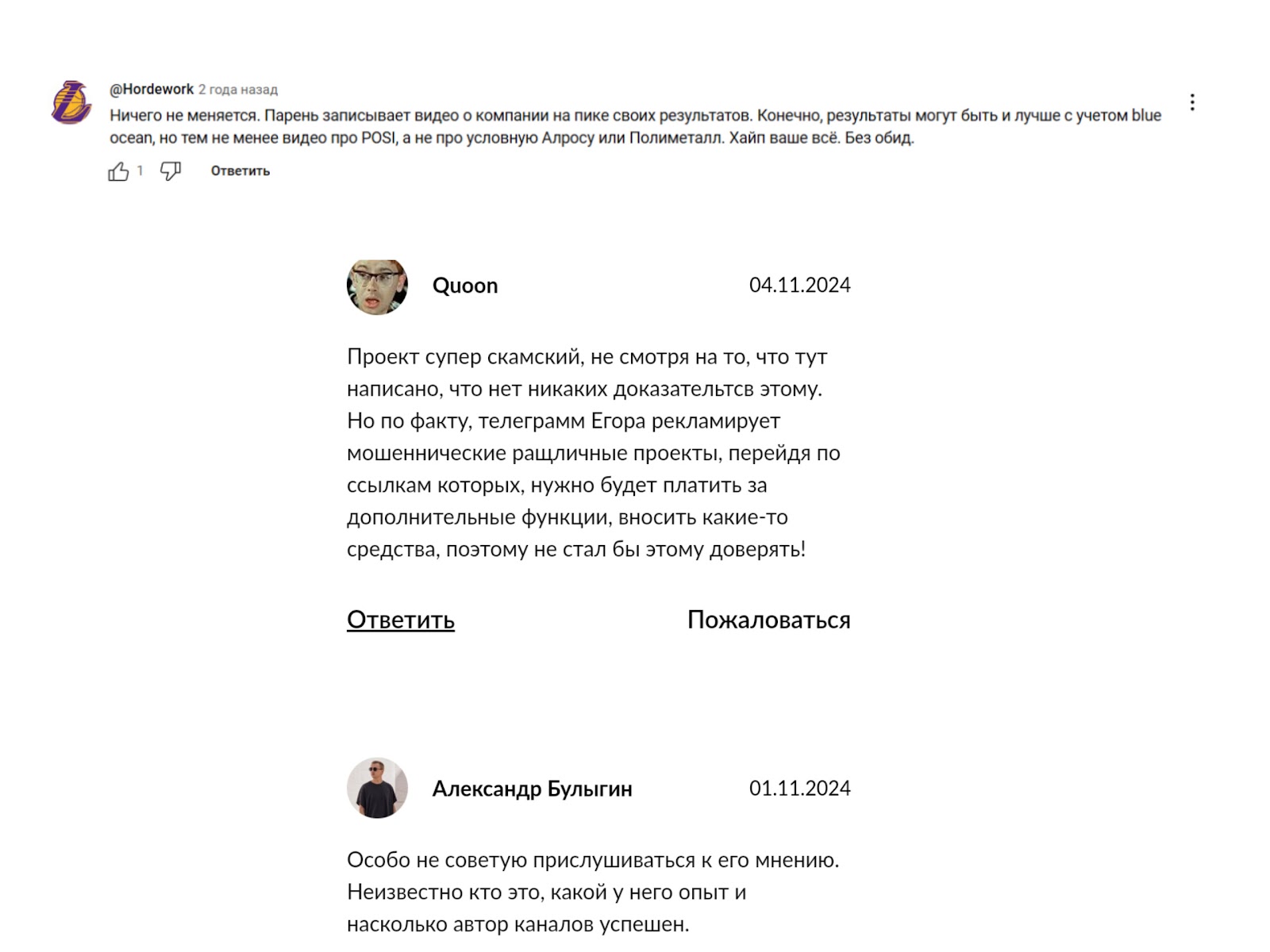 На сторонних ресурсах мы нашли негативные отзывы о блоге Tauren Инвестиции. Пользователи пишут, что автор продвигает мошеннические проекты.