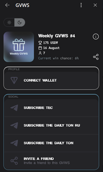 TEC Team — это канал в телеграмм, в котором регулярно проводятся розыгрыши монет USDT и TON. Для участия необходимо запустить чат-бота Gvws bot, через которого откроется мини-приложение.