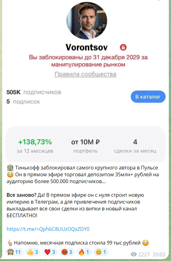 В процессе анализа деятельность телеграмм-канала “Телеграф инвестора” мы изучили контент автора, отзывы пользователей и вероятные признаки развода аудитории.