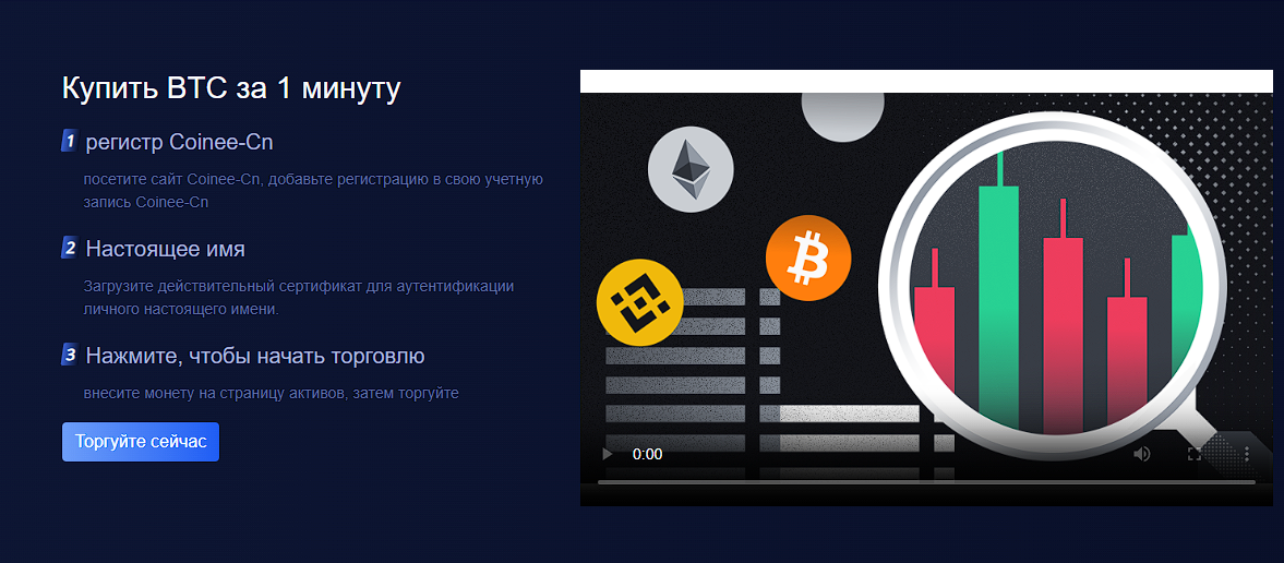Торговать на платформе предлагается через терминал Coinee-Cn. Сделать это можно через веб-версию или мобильное приложение для Android. Скачивать его не рекомендуется, не исключено, что оно содержит вирусы, так как загружается со стороннего сайта.