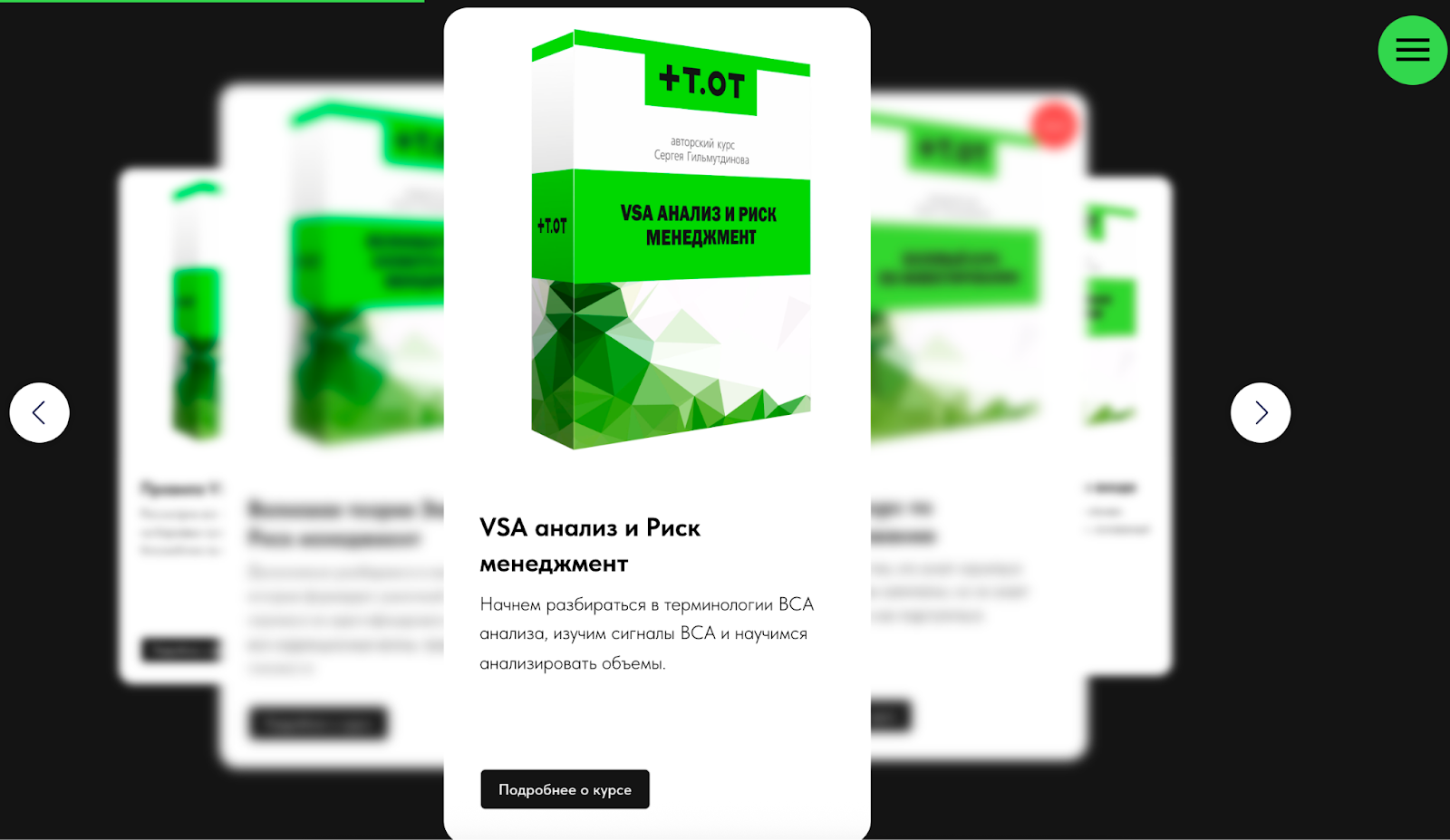 Для самостоятельного обучения собраны 5 курсов: «Правила VSA», «VSA-анализ и Риск менеджмент», «Базовый курс по инвестированию», «Универсальная точка входа», «Волны Эллиотта и Риск менеджмент». Стоимость за 1 материал варьируется от 6500 рублей до 30 тысяч руб.