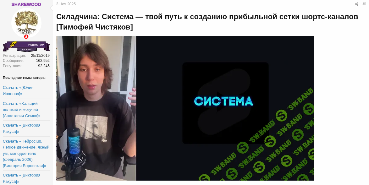 В сети про Тимофея Чистякова разоблачения не пишут. Ведь по сути он не так давно начал свою деятельность в Телеграме. Но его уже заметили пользователи площадок со сливами курсов — программу обучения Система — твой путь к созданию прибыльной сетки шортс-каналов с каждым месяцев ищет все большее число людей.