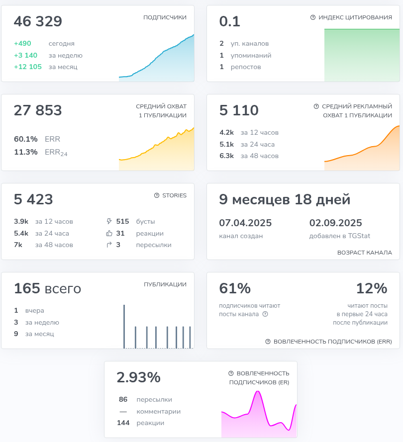 Тимофей Чистяков — Телеграм-канал, созданный в первой половине 2025 года. На конец января 2026-го имеет более 46 тысяч подписчиков. Публикации набирают в среднем по 27 тысяч просмотров — половина аудитории либо неактивная, либо есть боты. Подозрение в накрутке подтверждает резкий прирост аудитории — +12 тысяч человек за последний месяц при индексе цитирования всего 0.1.