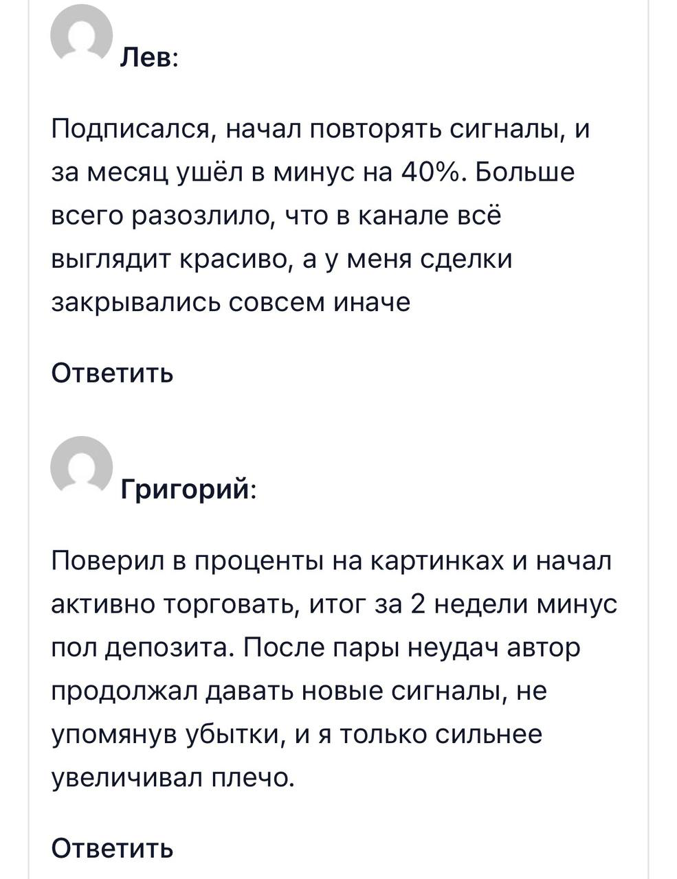 Если клиент понес убытки, то они полностью остаются на нем без компенсаций от Тимофея. Автор ограничивается лишь передачей торговых идей и сигналов для исполнения подписчиками на их собственных аккаунтах. Гарантии доходности или возврат средств не заявляются.