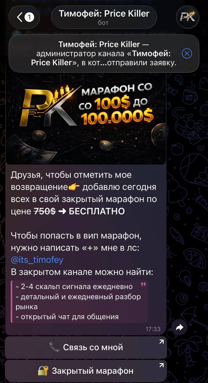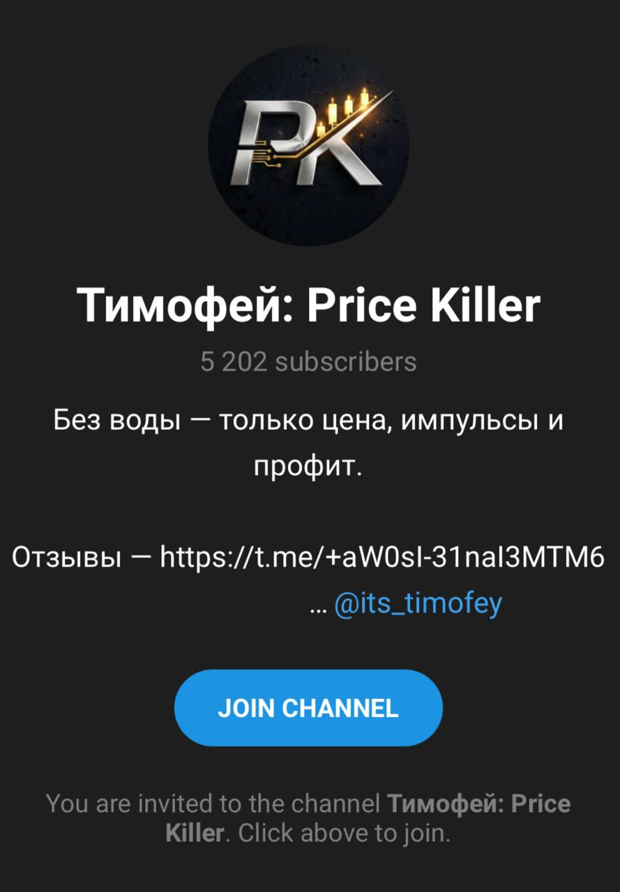 Мы не рекомендуем доверять этому каналу свои средства. Если у вас уже есть опыт взаимодействия с Тимофеем Price Killer, поделитесь им в комментариях.