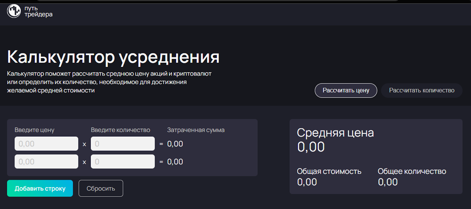 С его помощью можно просчитать усреднение выбранного актива и количество бумаг для позиции.