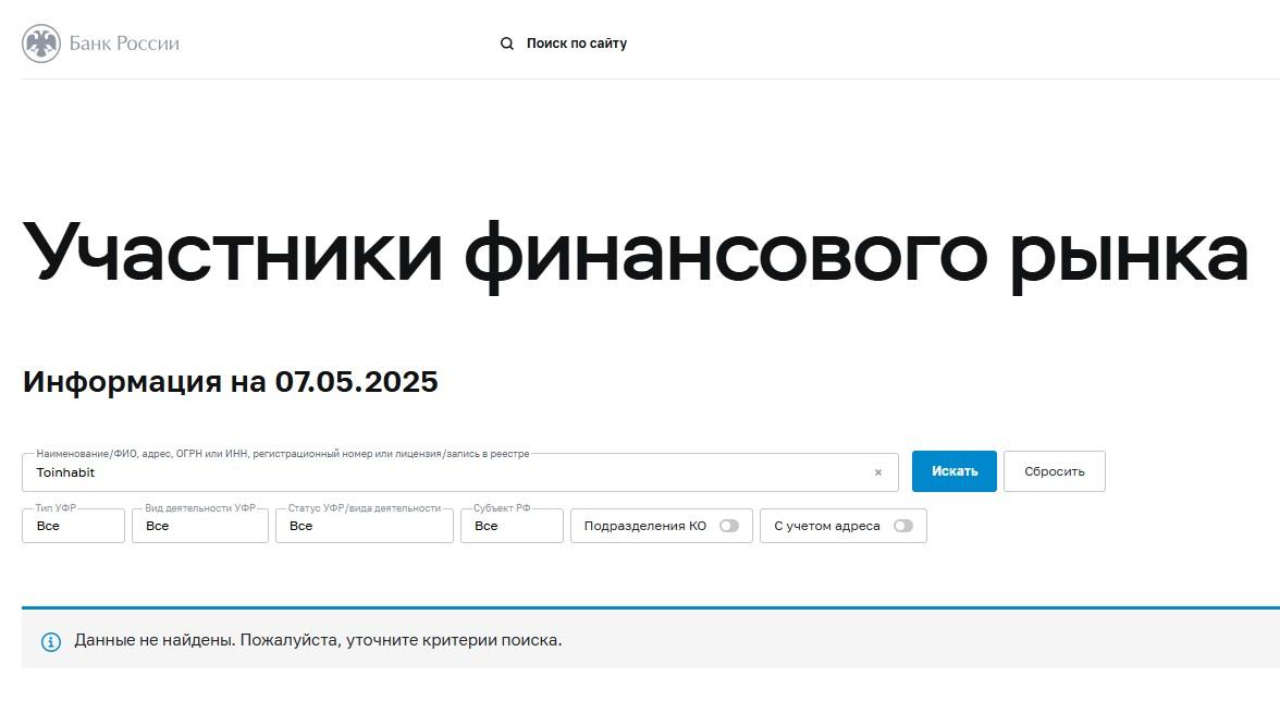 Наш вердикт – доверять бирже Toinhabit не советуем.