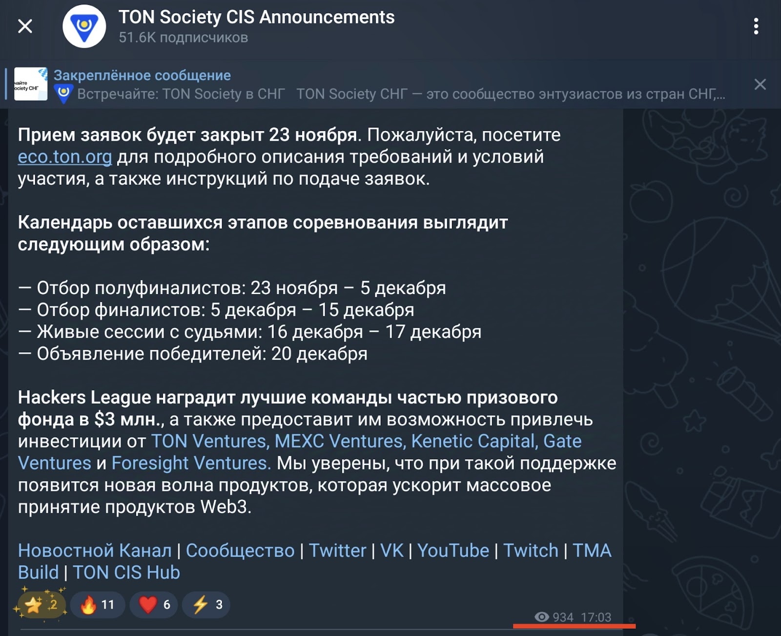 Также у проекта есть канал в Телеграмм на русском языке — TonSocietyCisHub, и несколько чатов для подписчиков — TON Society Chat и TON Society СНГ.