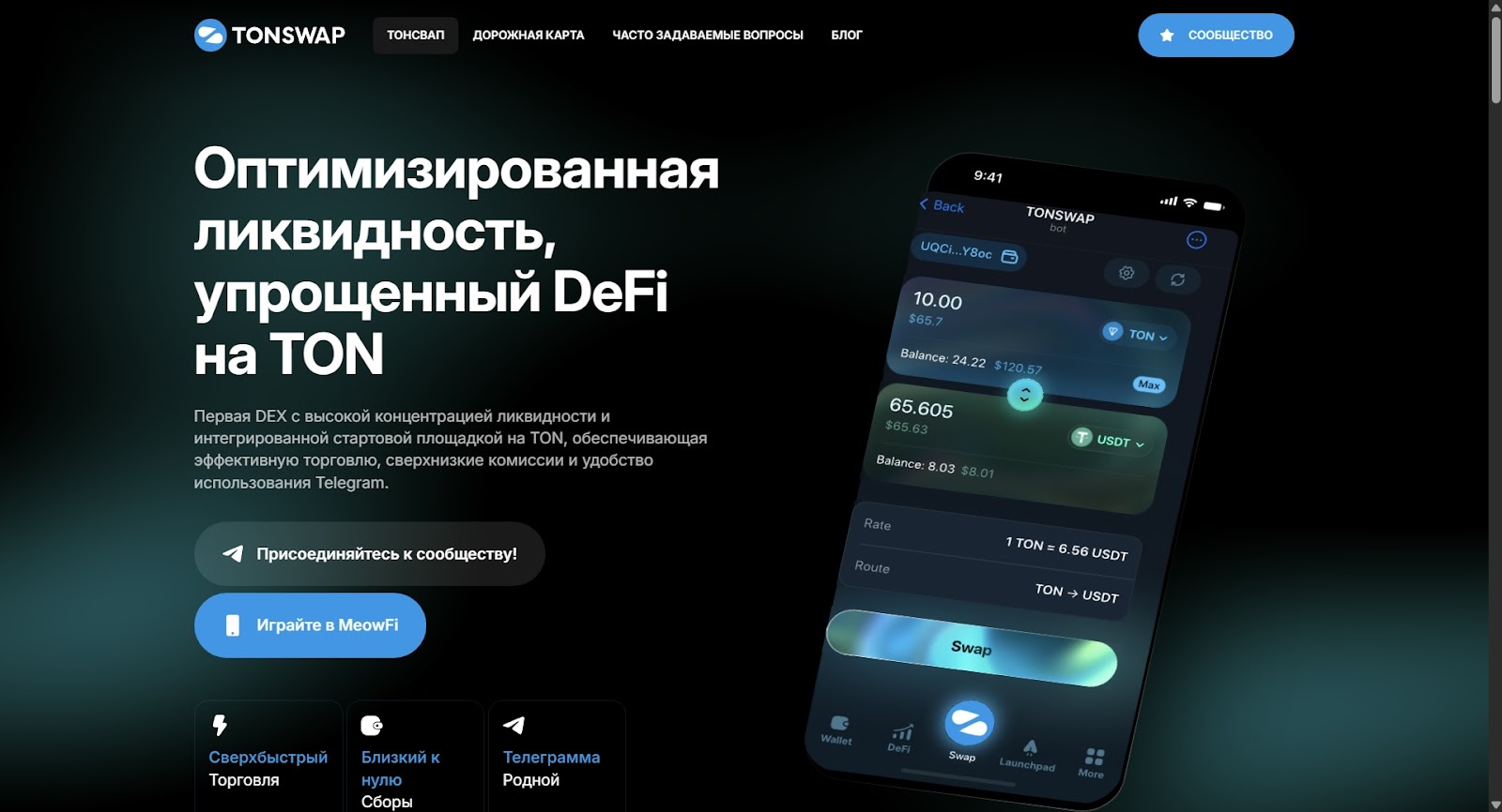 Ton swap — децентрализованный протокол для обмена цифровых активов, функционирующий в рамках экосистеме блокчейна TON. Сервис обеспечивает ликвидность для токенов стандарта Jetton, используя алгоритмы автоматического маркет-мейкера вместо классических биржевых стаканов.