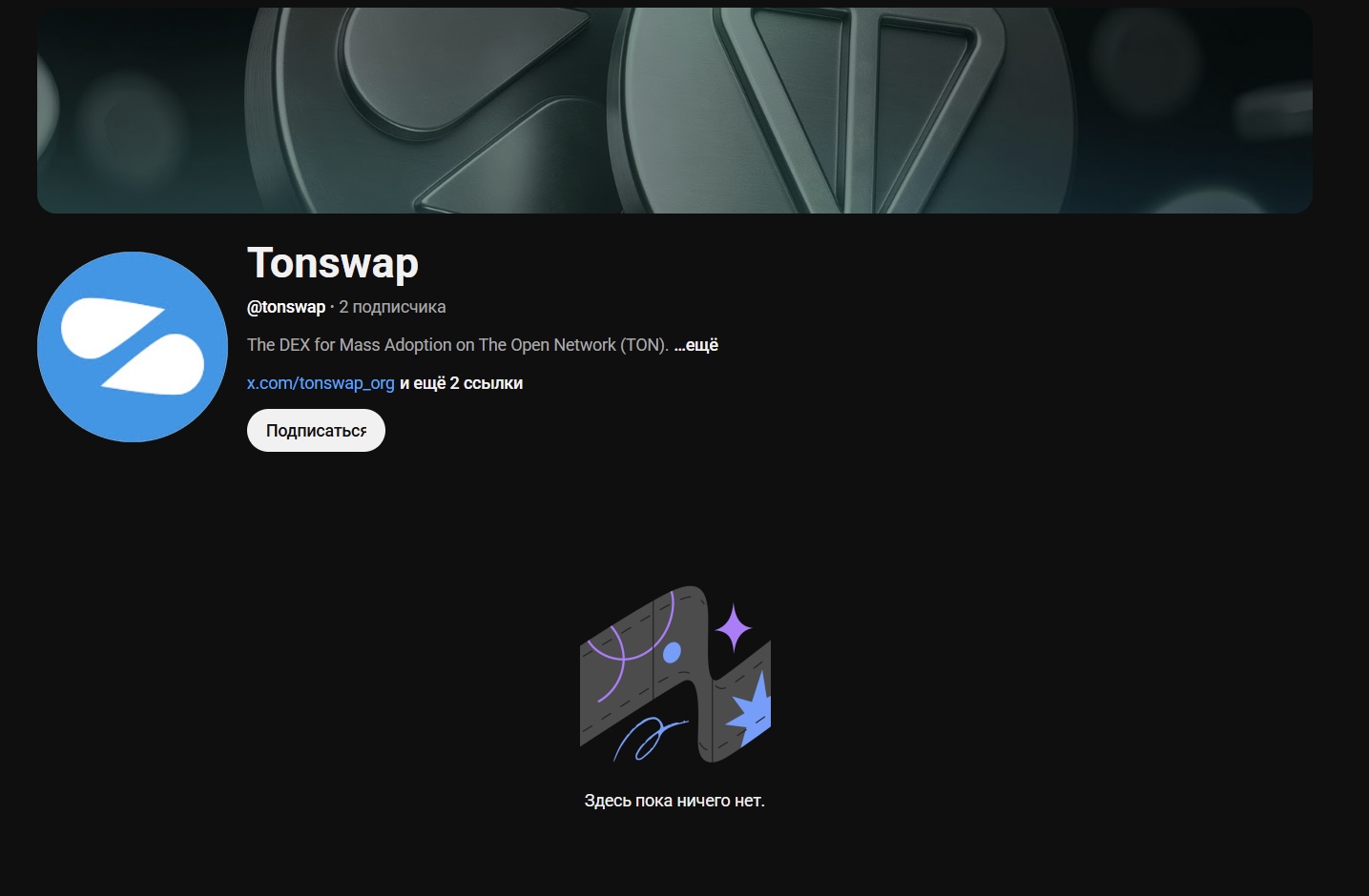Tonswap в цифровом пространстве сосредоточена на трех ключевых платформах: Telegram, YouTube и Twitter. Несмотря на статус первого или ведущего протокола в сети TON, активность в этих социальных сетях носит формальный, а зачастую и полностью статический характер.