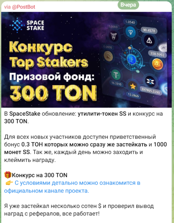 Довольно часто в ленте ресурса можно увидеть приглашения на различные конкурсы. Участники событий могут стать счастливыми обладателями приветственного бонуса и цифровых монет. Конкурсы проводятся для привлечения целевой аудитории. Для получения подарков нужно подписаться на несколько дополнительных каналов.