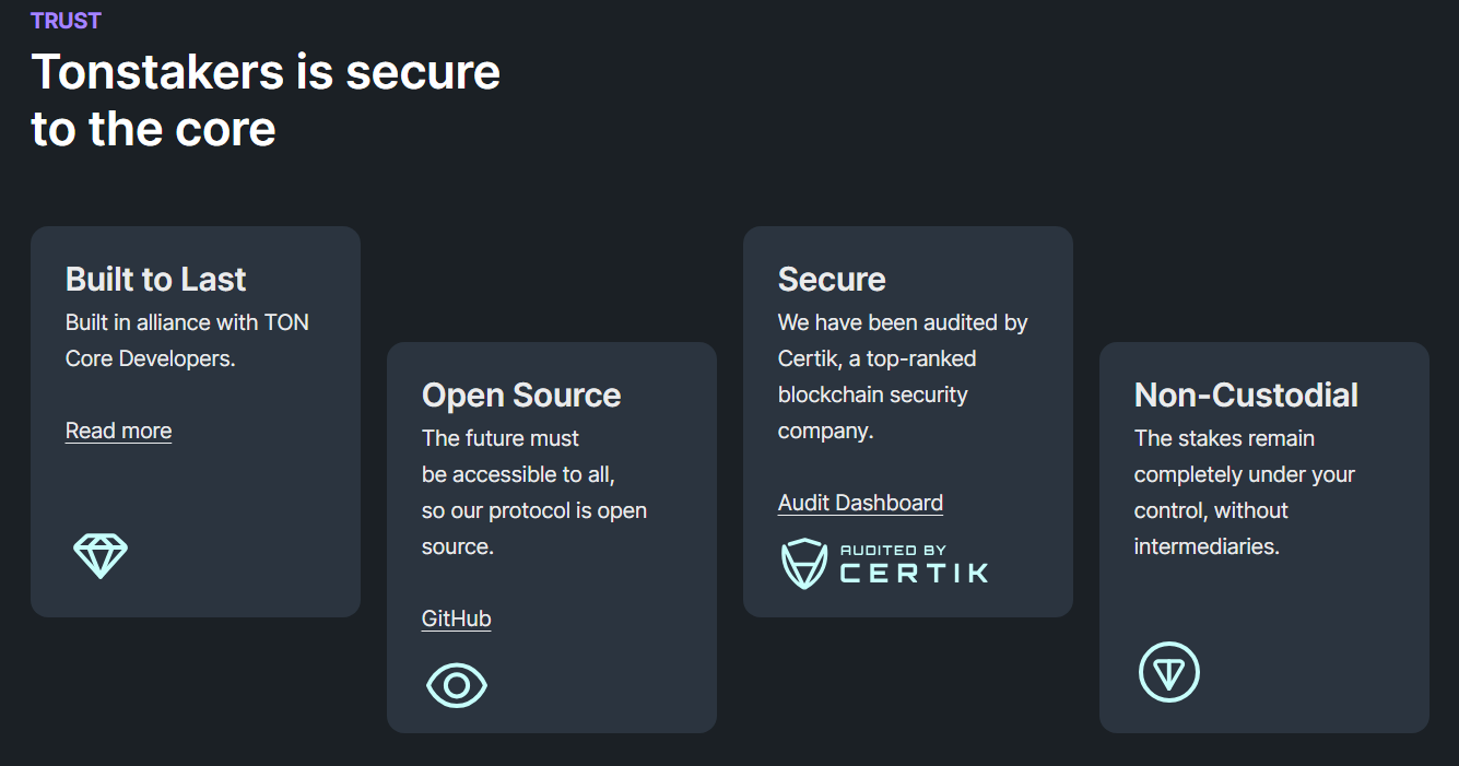 В обзоре на сайте разработчики подчеркивают несколько ключевых преимуществ выбора платформы Tonstakers для потенциальных клиентов: