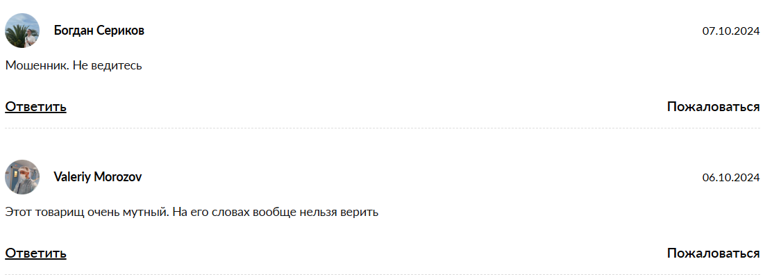 В отрицательных комментариях пользователи называют проект мошенническим. Они утверждают, что автор рекламирует убыточные монеты, на которых невозможно заработать.