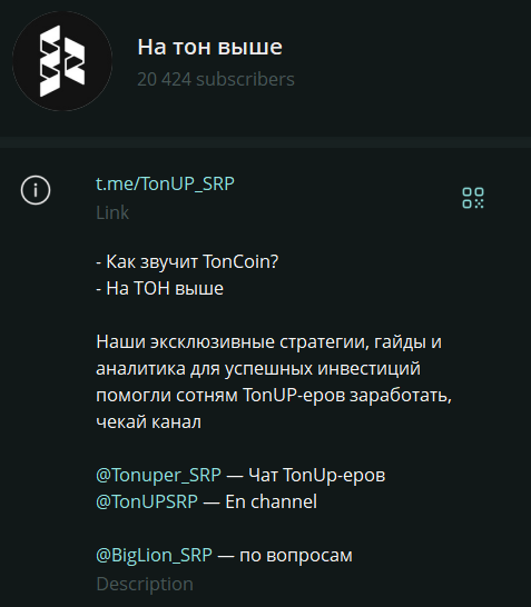 Что известно про канал TonUP SRP в Телеграмм