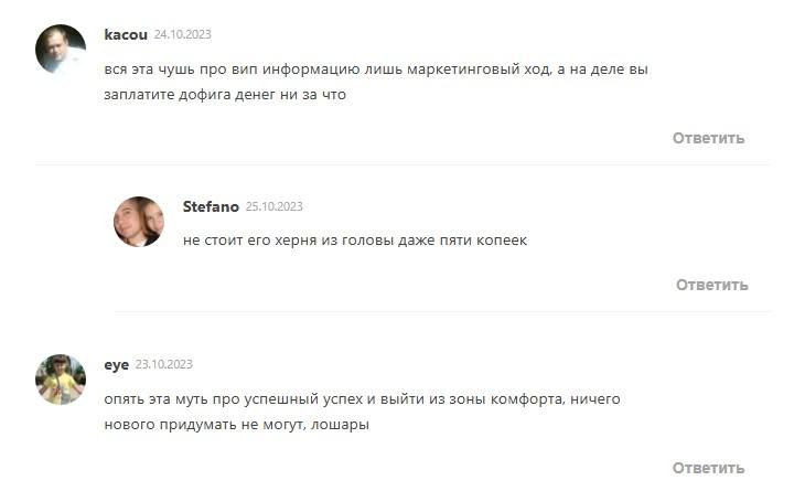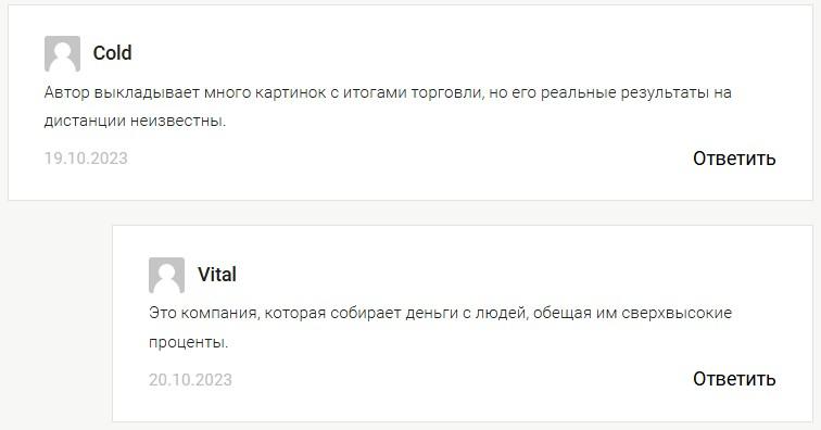 Положительные отзывы обнаружить не удалось. А критика проекта часто связана с низким качеством сигналов. Клиенты указывают на отсутствие статистики и блокировку комментариев. Недостаток открытости создает впечатление недобросовестности.