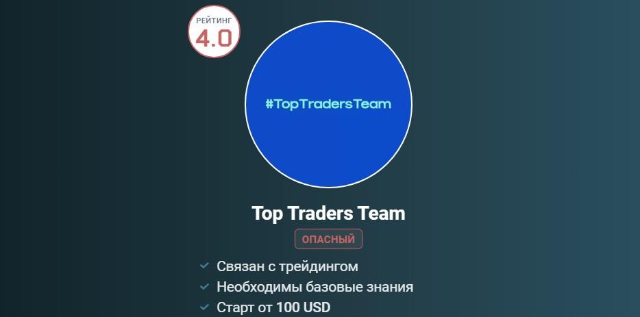Top Traders Team — канал в Telegram, посвященный криптовалюте. Автор проекта, известен как Vitaly Toptraders. Подписчикам предлагает якобы прибыльные стратегии. С их помощью клиенты должны зарабатывать большие деньги. Контент представлен новостями рынка криптовалют. Публикуются сигналы для сделок. Предоставляются рекомендации как покупать и продавать в лонг и шорт. Однако настоящая статистика результатов закрыта. А это вызывает вопросы о надежности проекта.
