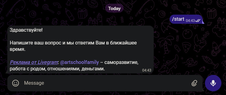 Нажав на Start, пользователь должен написать сообщение и ждать ответа.