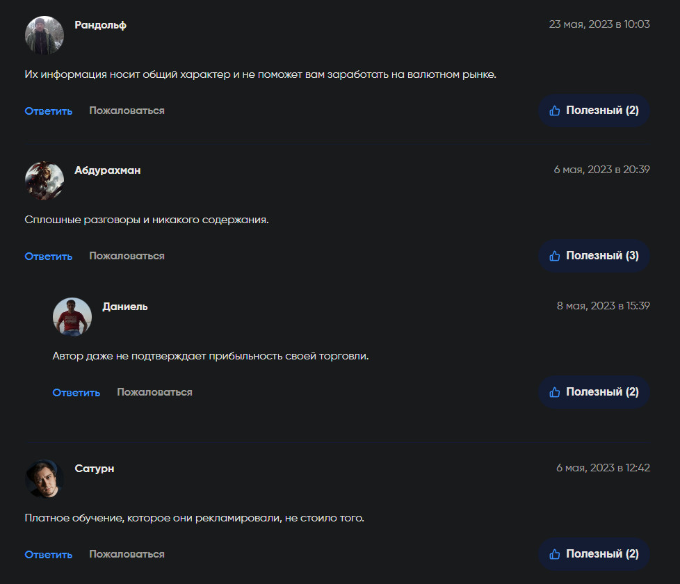 Подвергается сомнениям и качество его наставничества: некоторые бывшие клиенты сообщают о невысокой содержательности и бесполезности его платных уроков.