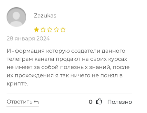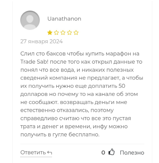 Недовольные пользователи указывают на бесполезность информации, которую продают в данном телеграмм-канале. Также, после покупки VIP-марафона оказалось, что нужно доплатить, чтобы получить всю информацию.
