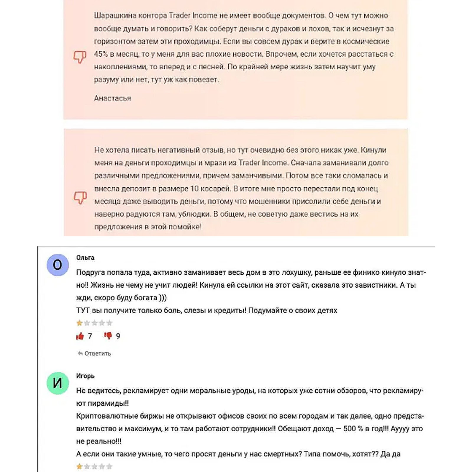 Отзывы о проекте Trader Income