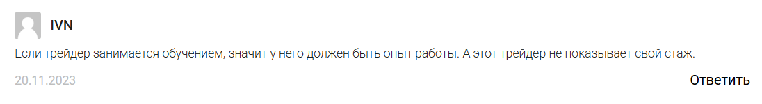 Претензией к трейдеру является и то, что ему не доверяют из-за анонимности и отсутствия информации о своем опыте.