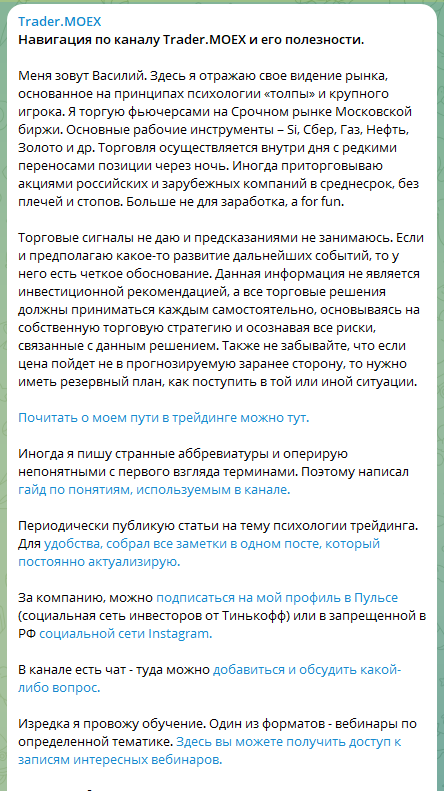 Оценка Телеграм-канала Trader Moex, описание услуг трейдера и отзывы