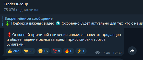 Перед покупкой платных материалов, конечно, стоит ознакомиться с бесплатным контентом, который позволит определить, насколько Сергей Виноградов и Traders Group компетентны. В тг-канале, к сожалению, большая часть контента не позволяет это сделать. В видеоформате здесь часто публикуются обзоры рынка, но обычно их длительность не превышает и 2-х минут. Конечно, за такое время нельзя дать полноценный анализ. поэтому он обычно очень поверхностный и не демонстрирует профессиональные качества инвестора.