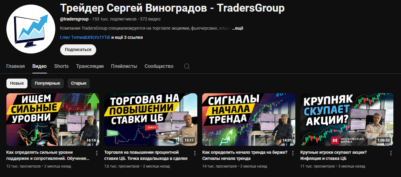 Более привлекательный контент представлен на ютуб-канале трейдера Сергея Виноградова. А в Telegram есть подборки якобы наиболее полезных видео. Однако это не совсем так – в этих “подборках” содержатся, по сути, все ролики за определенный период, а не самые важные, как их здесь называют. Также можно проследить кликбейтность некоторых названий: “Вы потеряете все на трейдинге, если…”, “Лучший индикатор…”, “Страшные истории” и т.д.