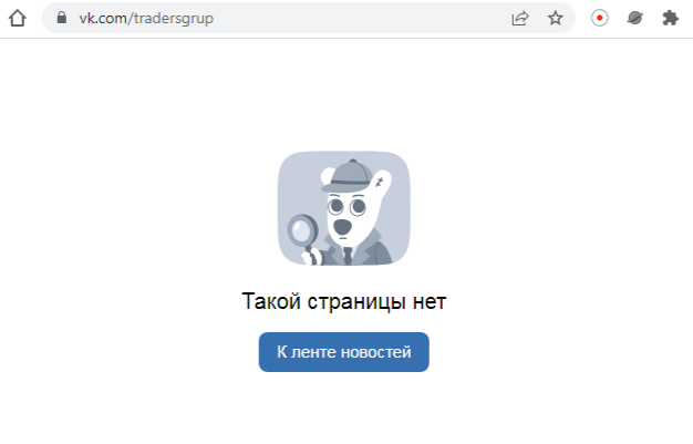 При проверке деятельности проекта нам была доступна ссылка @ tradersgrup на его сообщество в ВК, но этот паблик оказался удален. Других источников, например, веб-сайта или телеграм-канала у организации нет, поэтому изучить полноценно ее деятельность не получится.