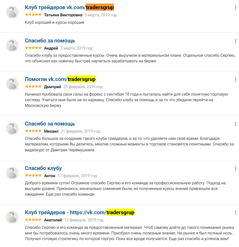 На данный момент источник «Клуб Трейдеров» засветился только на площадке якобы с независимыми отзывами. Тут в его адрес находятся довольные высказывания. Подробнее их мы рассмотрим позже.