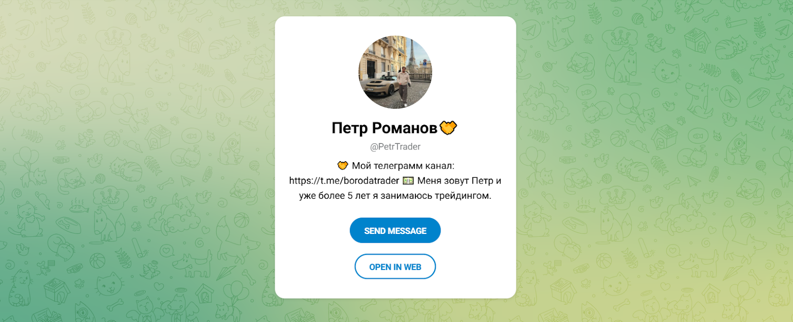 Автор канала “Трейдинг с Петром” — маркетолог нового формата, который выстроил вокруг своего имени связку из ТГ-канала, YouTube-аккаунта и личного общения в мессенджере.