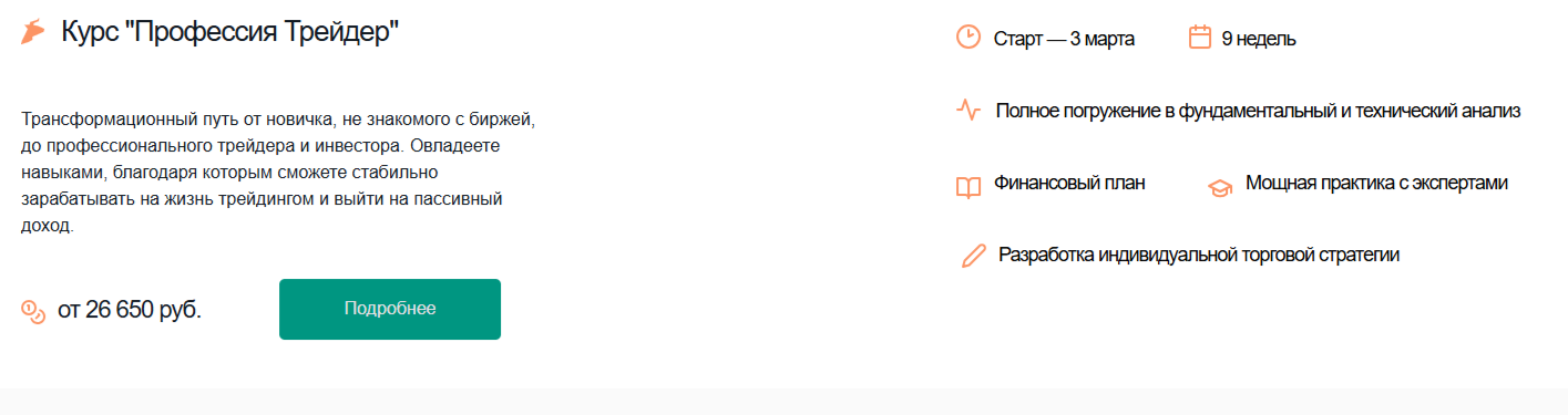 - «Профессия трейдер» — стоимость от 26 650 рублей;