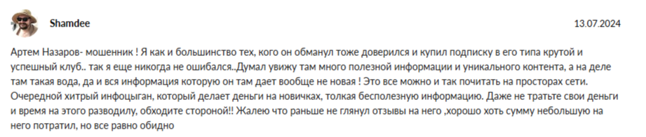 В интернете довольно много негативных комментариев в адрес Артема и его школы. Клиенты сообщают, что он мошенник и его имя часто всплывает в очередном проекте, который не несет никакой пользы.