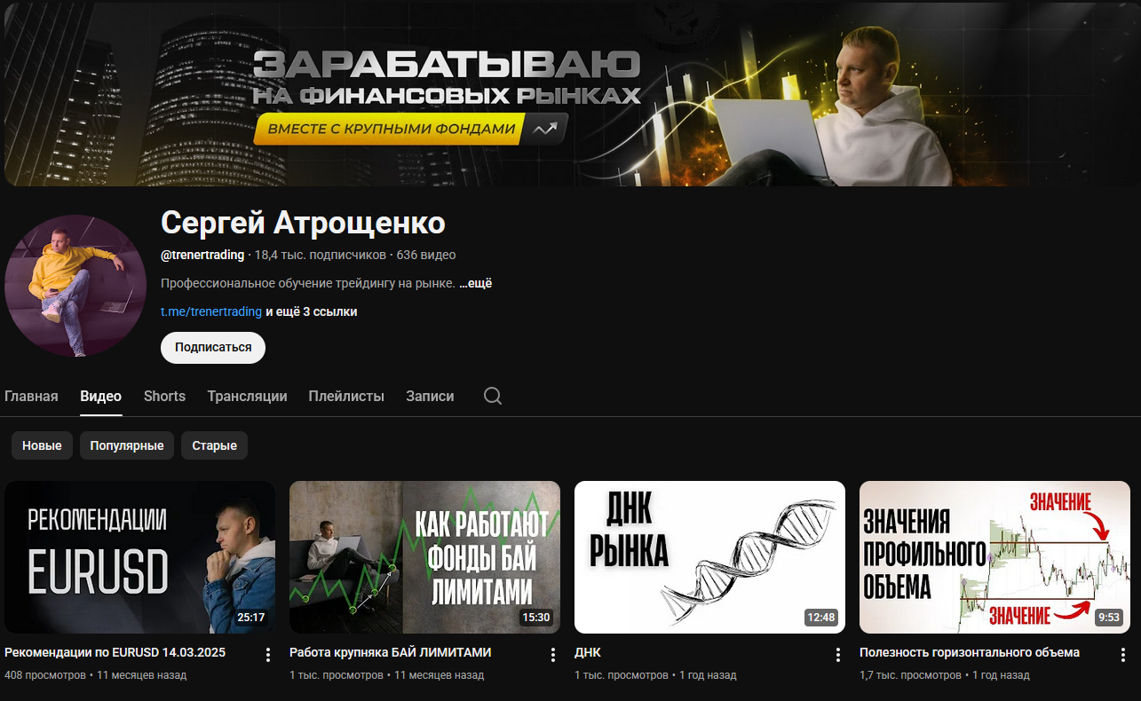 • Ютуб — 18,4 тысячи сабскрайберов, он опубликовал 636 видео и собрал 2 миллиона просмотров;