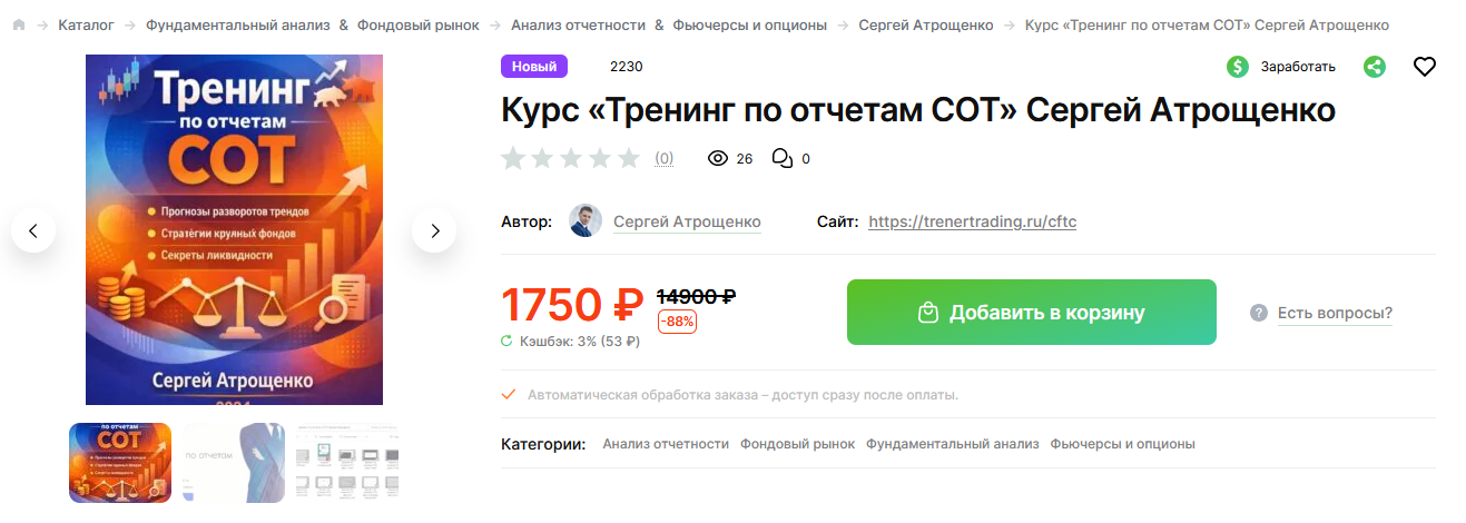 Сергей Атрощенко выпустил тренинг по отчетам СОТ в 2024 году. Сейчас это уже не основная работа автора, потому приобрести ее можно с большой скидкой на неофициальных маркетплейсах.