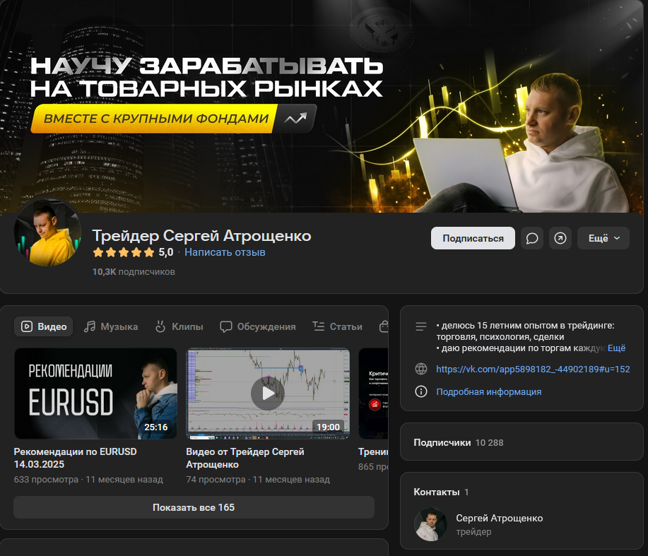 В описании Сергей сообщает, что более 15 лет занимается финансами, обучил множество студентов. Но для подтверждения этой информации он не публикует какие-либо документы или другие доказательства.