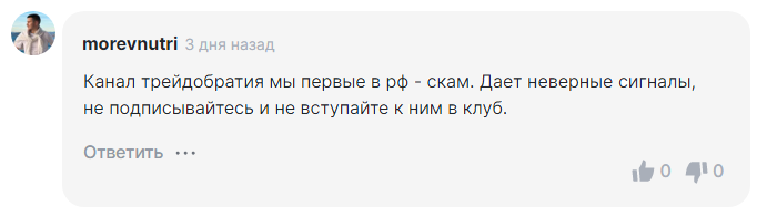 Другой подписчик назвал проект Евгения скамом, который дает неверные сигналы.
