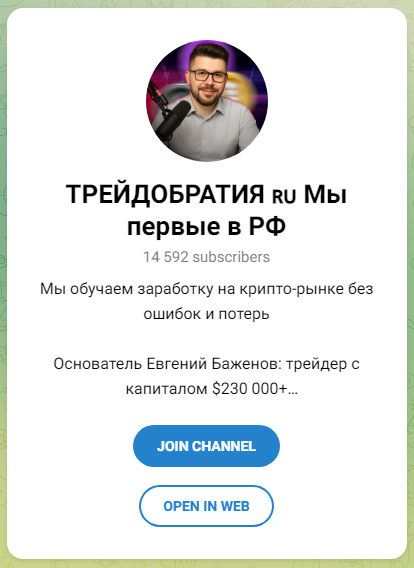 Евгений Баженов называет себя трейдером, в Telegram ведет канал под названием «Трейдобратия». В своем паблике он пишет, что знает секретные схемы работы и управляет огромным капиталом. Утверждает, что ему удалось достичь низкого процента убыточных сделок. В этом обзоре мы изучим, что предлагает Евгений своим читателям, и действительно ли можно заработать, следуя его советам.
