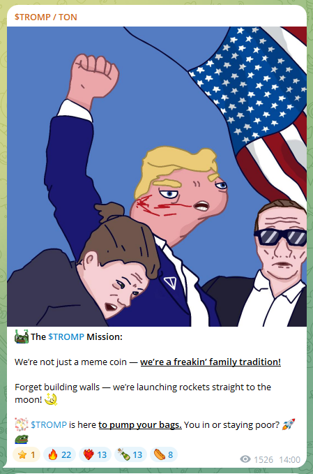Tromp Ton – цифровой актив. Создатели проекта заявляют, что токен не является инвестиционным средством или ценной бумагой, а служит выражением поддержки и символом, отражающим образ президента США.