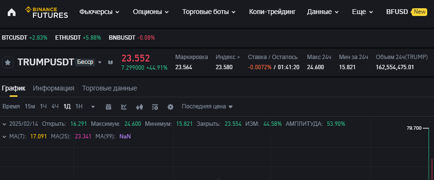 - Риски и волатильность: у монеты трампа высокая волатильность, отсутствует фундаментальная ценность, возможны резкие колебания цены.