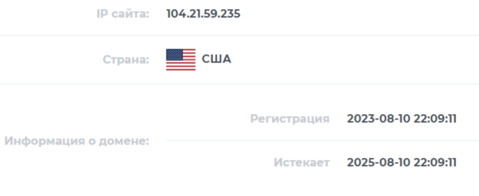 Домен сайта зарегистрирован 10.08.2023 в США Сан–Франциско.