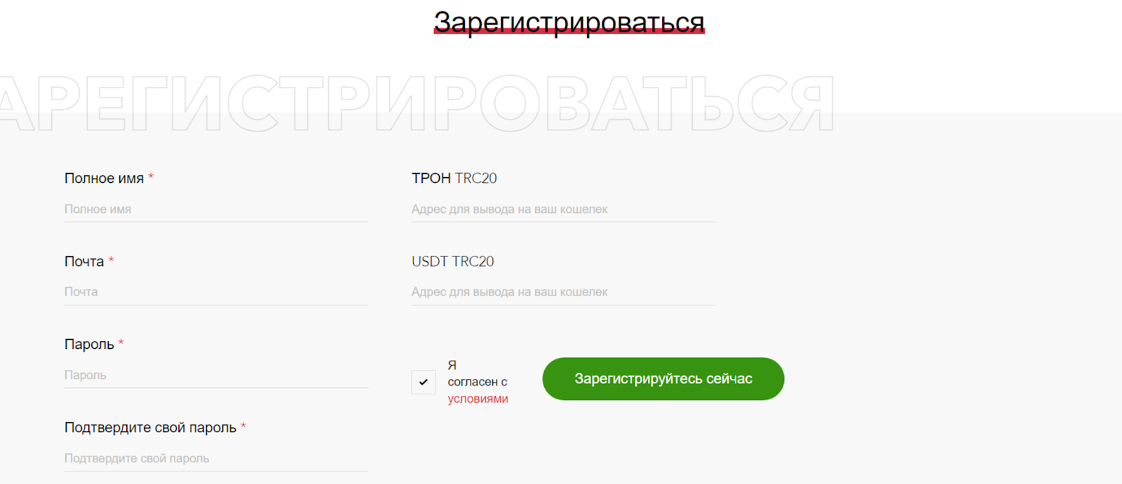 Платформа обещает мгновенную регистрацию: нужно лишь внести личные данные и адрес для вывода на кошелек.
