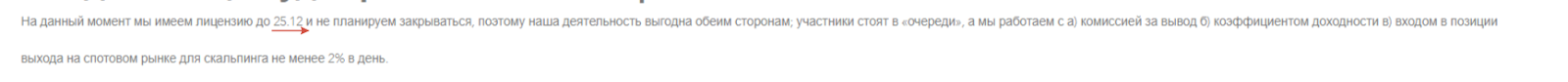 Присутствует информация о лицензии платформы, однако документы, подтверждающие данный факт, не прилагаются.