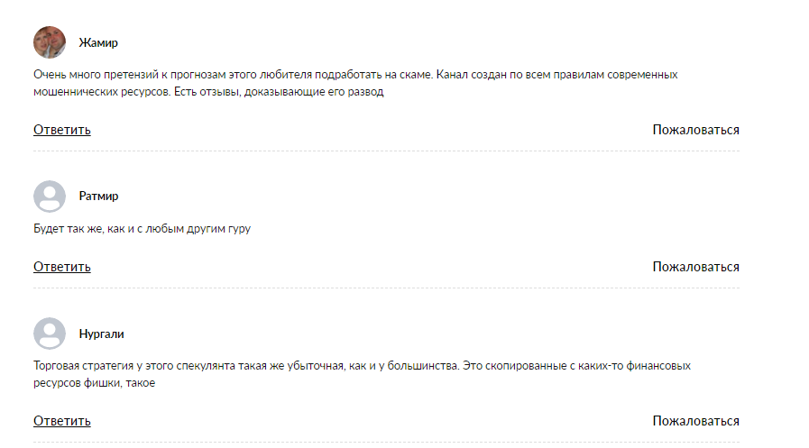 Отзывы о канале «Тропа Стабильности» в сети исключительно негативные. Пользователи жалуются на то, что торговые сигналы этого автора имеют низкую проходимость, и они потеряли деньги. По их словам, канал не заслуживает внимания, и с этим трейдером заработать не получится. Они сомневаются, что он реально эксперт и призывают не связываться с ним.