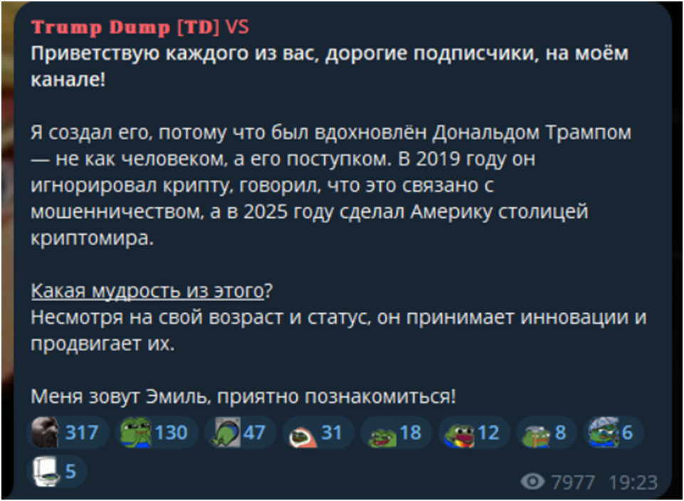 Деятельность тг-канала Trump Dump