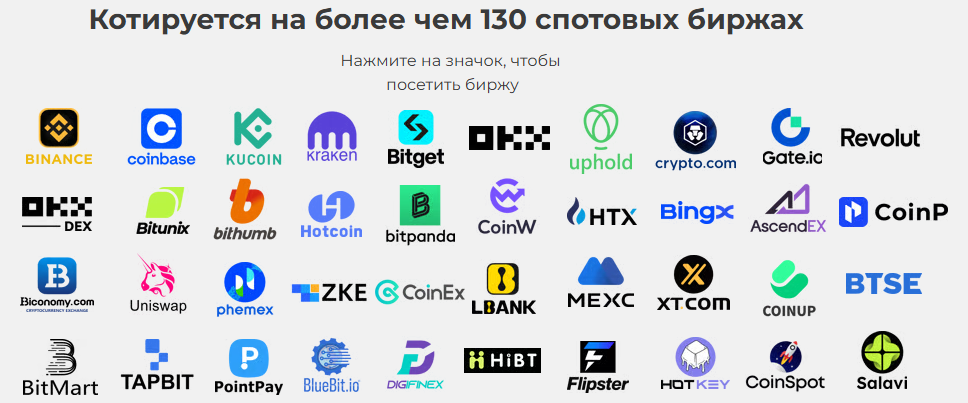 Токен начал полноценно торговаться на биржах примерно с начала 2025 года. К июлю он был добавлен более чем на сотню площадок, в том числе Binance, Kraken, Coinbase. Это очень большой плюс для инвестора, поскольку обеспечивает ему возможность быстро купить или продать актив.