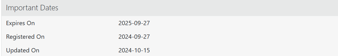 - домен сайта зарегистрирован в сентябре 2024 года;
